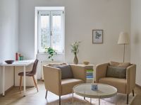 Couch und Sessel im Therapieraum. Hier findet der gemeinschaftliche Teil der Arbeit von Psychotherapeutin in Ausbildung unter Supervision Verica Mitrovic mit ihren Patient*innen statt.