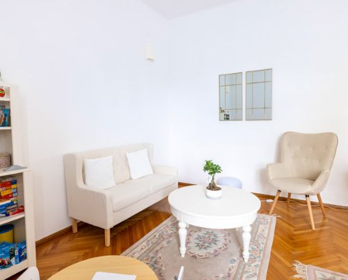 Mein freundlich eingerichteter Gesprächsraum bietet Freiraum, Ruhe und Privatsphäre für Ihre Behandlungsgespräche.