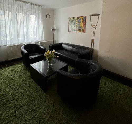 Gemütlicher, heller Gesprächsraum mit Wohnzimmeratmosphäre in der Lichtblickpraxis - mit Blick auf den Plabutsch.