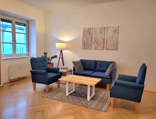 Unser großer heller Praxisraum in der Schwaigergasse 35. Gemütlich, klar, ruhig. Richtig gut geeignet zum intensiven Arbeiten.