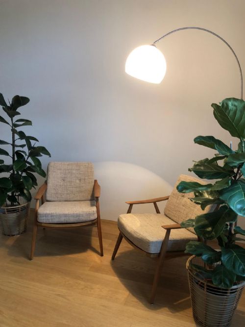Zwei gemütliche Therapiestühle zur Gesprächsführung in angenehmer Atmosphäre.