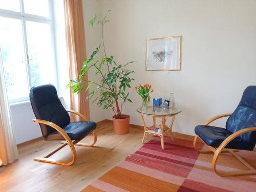 Mir ist es ein Anliegen, dass Sie sich in meiner Praxis geschützt und wohl fühlen - ein sicherer Ort für Ihre Anliegen. Daher erwarten Sie großzügige, licht- und luftdurchflutete Räumlichkeiten.