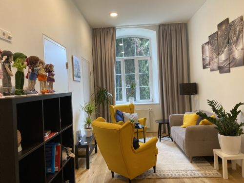 Gemütliche Praxis in Salzburg-Nonntal, geeignet für Einzeltherapie und Paartherapie. Gute Anbindung an Öffentliche Verkehrsmittel und Parkplätze in der näheren Umgebung.