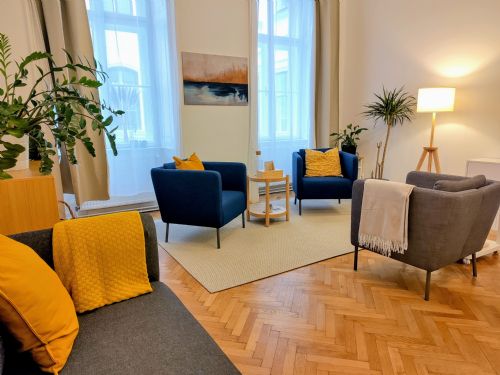 modern eingerichteter Praxisraum im 7. Liftstock mit wunderbarem Blick auf den Donaukanal