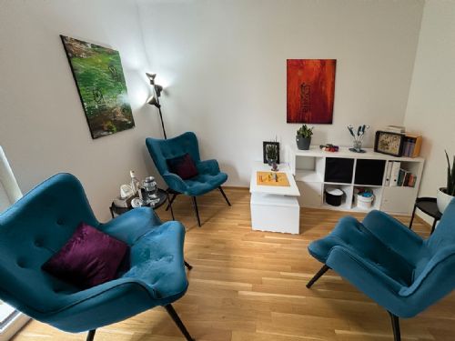 Der große Praxisraum bietet durch seine Größe von über 21qm und die Ausstattung mit unterschiedlichen Arbeits- und Therapieutensilien vielseitige Möglichkeiten therapeutischer Arbeit (Psychotherapie Einzelsetting, Paartherapie, Körperarbeit, Kleingruppen).