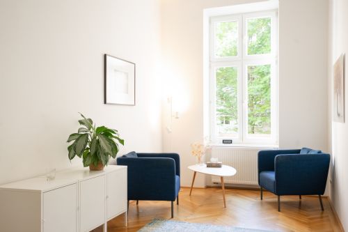 Ruhiger, geschützter Seminarraum für Familien- und Gruppentherapie, Selbsterfahrungs-WE, Aufstellungsarbeit und Gesundheitsförderung. Großzügiger Pausenraum mit Teeküche und Sanitärraum. 200m zum Augarten. 250m zur U2 Taborstraße. Garage in der Nähe.