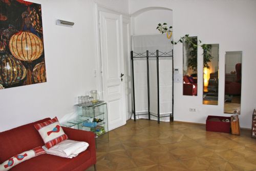Gemütliche Praxis in Salzburg-Nonntal, geeignet für Einzeltherapie und Paartherapie. Gute Anbindung an Öffentliche Verkehrsmittel und Parkplätze in der näheren Umgebung.