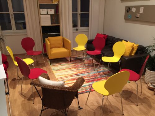 Bei der Gestaltung des Praxisraumes waren mir freundliche Farben und Gemütlichkeit wichtig. Ich bin überzeugt, dass das Wohlbefinden im Raum für die Therapie wichtig ist.