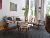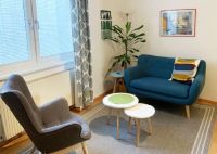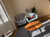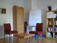 Der angenehm helle Praxisraum, ruhig im 3. Stock gelegen, angenehme Altbau-Höhe, hier lässt es sich gut und sicher mit Einzelpersonen, Paaren, kleineren Teams und Gruppen arbeiten.