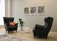 Zwei gemütliche Therapiestühle zur Gesprächsführung in angenehmer Atmosphäre.