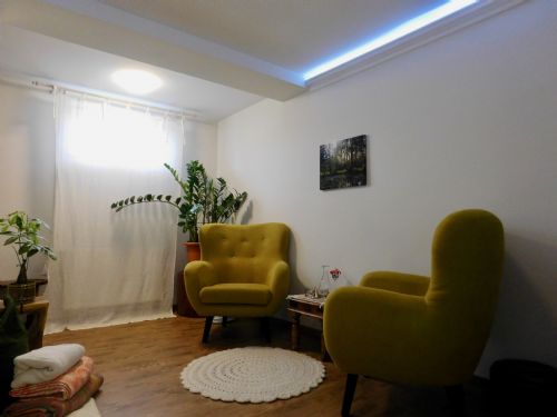 In diesem Raum finden die Biofeedback-Sitzungen statt. Über den Bildschirm haben Sie die Möglichkeit, Ihre körperlichen Werte zu sehen und selbst zu beeinflussen. Das stärkt wieder das Vertrauen in den eigenen Körper!