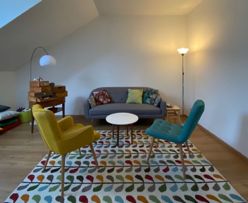 Mein Praxisraum befindet sich im Dachgeschoss des Hauses. Er ist über einen Lift erreichbar, allerdings nicht barrierefrei.