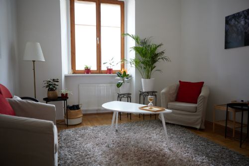 Im hellen Praxisraum laden bequeme Sitzgelegenheiten ein, sich zu entspannen.
