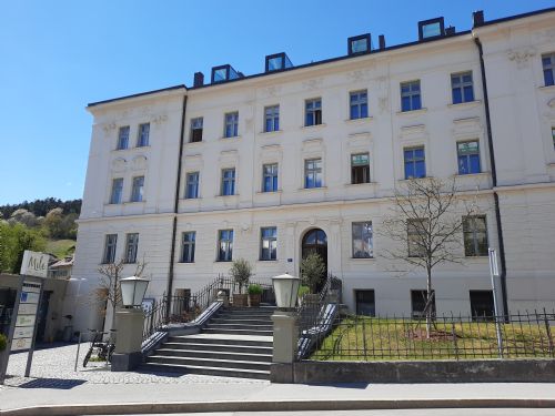 Im Erdgeschoß des Osttraktes der Donau-Universität Krems (Altbau, linke Bildseite) befindet sich das Zentrum für Psychosoziale Medizin und Psychotherapie.