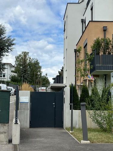 Im Eingangsbereich des Gebäudes befindet sich die Gegensprechanlage, wählen Sie 35 und #, ich melde mich zu einer kurzen Begrüßung und öffne Ihnen.