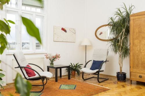 Im 30m2 großen Praxisraum gibt es ausreichend Platz für Psychotherapie im Sitzen, Gehen, für Bewegung und Kreativität.