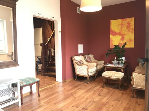 Im Praxisraum Klosterneuburg Es ist eine sehr heimelige Praxis im Ortsteil Höflein an der Donau direkt an der S-Bahn-Strecke nach Wien. Der Raum strahlt Wärme aus. Menschlichkeit wird GROSS geschrieben.