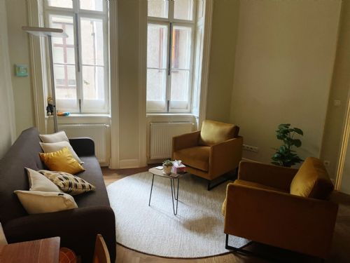 Der Praxisraum ist ruhig, meist sonnendurchflutet und bietet eine angenehme Atmosphäre auch für Gespräche und zum Runterkommen.