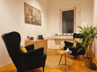 Mir ist es ein Anliegen, dass Sie sich in meiner Praxis geschützt und wohl fühlen - ein sicherer Ort für Ihre Anliegen. Daher erwarten Sie großzügige, licht- und luftdurchflutete Räumlichkeiten.