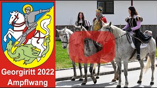 Georgiritt 2022 im Reiterdorf Ampflwang. 80 Pferde, 10 Reitergruppen, Kutschen, Ponys und Stuten mit Fohlen zum Streicheln. Ein gelungenes Fest zu Ehren des hl. Georg mit Segen für Pferde und Reiter*innen. Brauchtum / TraditionVeranstaltung Ampflwang im Hausruckwald