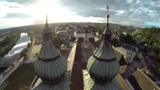 Luftaufnahmen der Stiftskirche Lambach, die als Gesamtanlage unter Denkmalschutz steht.